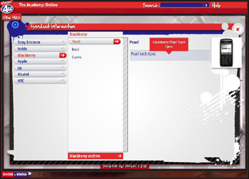 An important role for the Academy: Online is to provide sales staff with rapid access to reference materials, but without the need for them to navigate the 3D world or to use the menu and sub-menu hierarchy in each room.